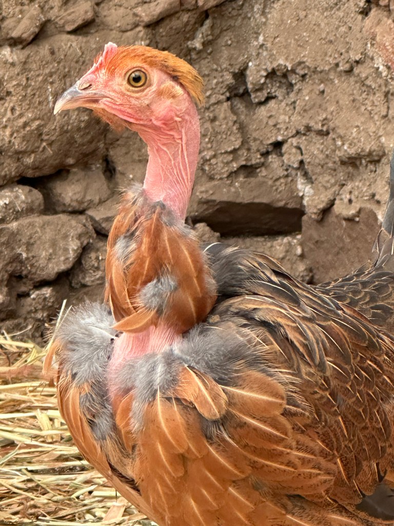 Quién quiere un gallo criollo que heredó el cuello y pecho pelones, colorados y brillantes, de remotos antepasados gitanos de donde esta variedad se originó.