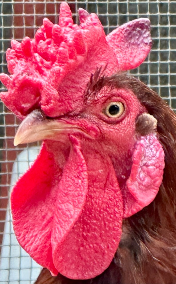 ¿Quién prefiere este gallo, el rey de mi gallinero, con su cresta de corona y su aire noble. Un gallo grande de más de cinco años, sosegado, sabio en su comunidad aviar? Acepto trueque con gallo joven, grande y bello.