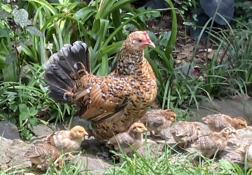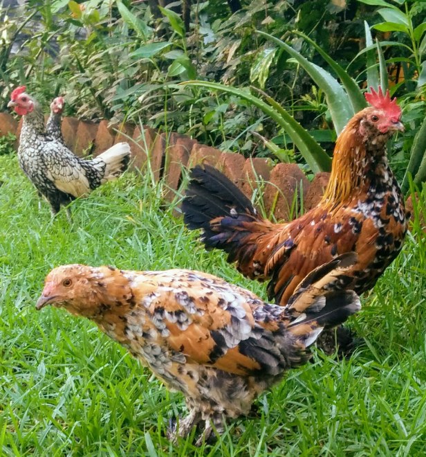 ¿Quién querría, con su gallo bonito, una parvadita de tres o cuatro gallinas? Ayudantes temporales que rascan el suelo de la cama donde vas a sembrar verduras, aflojándola y deshierbándola. Escandaloso grupo al avistar a un desconocido en su territorio, que suele ser también el nuestro.