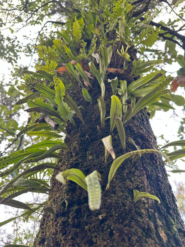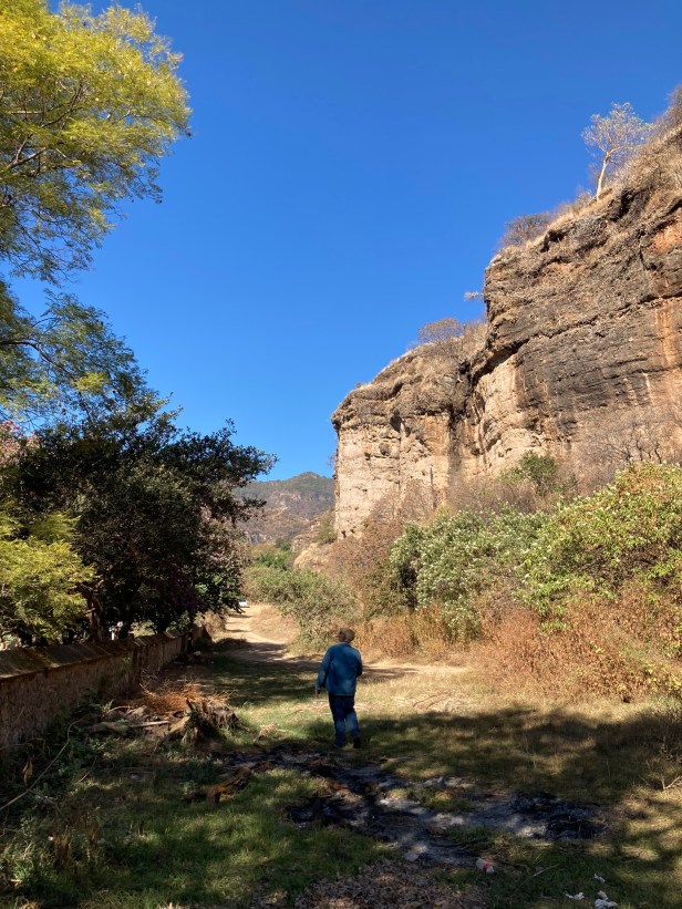 Es temporada de secas. Gary hace ver que la mayoría de las especies de árboles han tirado sus hojas, como todos los años, pero hay algunos que no. El cacaloxuchitl hasta flores tiene. Un amate gigante siempre verde, cuyo tronco inmenso se abraza a las rocas, tampoco. Y un Tepehuaje cuya frescura permite sobrevivir a un hermoso insecto, también sigue verde.